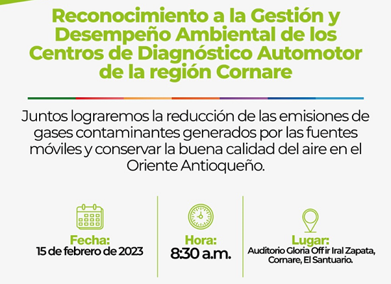 15/02/2023 de 8:30 am - 12:00 pm Reconocimiento a la gestión de los CDA Auditorio Gloria Offir Iral Zapata Cornare, El Santuario