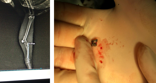 Y es que luego de ser herida, y sin conocer los antecedentes, fue ingresada a nuestro Hogar de Paso donde se presumía que tenía una fractura en una de sus patas. Sin embargo, luego de una radiografía en Medellín, el equipo de Fauna Silvestre se dio cuenta que se trataba de un disparo de rifle de copas que le fracturó terriblemente su extremidad.